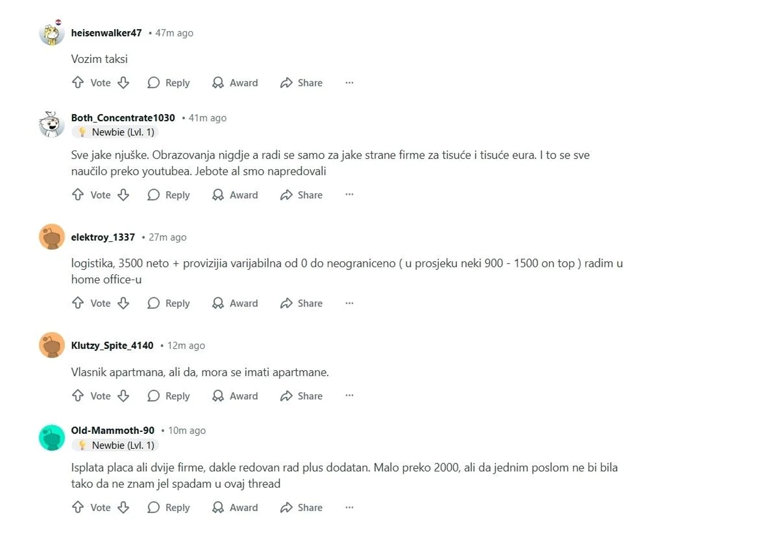 "Koji su vaši poslovi i jeste zadovoljni poslom koji radite? Planiram se vratiti u Hrvatsku sa ženom i s nerođenom kćerkom. Nemam neku posebno jaku školu ni kvalifikaciju koja bi me parkirala u ured i donijela stabilnu plaću. Nije mi problem raditi, ali ne želim završiti na minimalcu do kraja života. Koji sektori su danas ‘otvorenog tipa‘, znači gdje se može ući bez fakulteta i bez da te gaze s mizernom plaćom? Može manualno, može terensko, može digitalno – samo da ima realnih prilika da se zaradi nešto normalno ako se čovjek trudi. Ako imate iskustva ili preporuke, bacite sve opcije na stol, svaki savjet znači. Hvala unaprijed!" napisao je ovaj muškarac, dok je temeljno pitanje glasilo: Vi koji imate plaću veću od 2000 eura – čime se bavite?