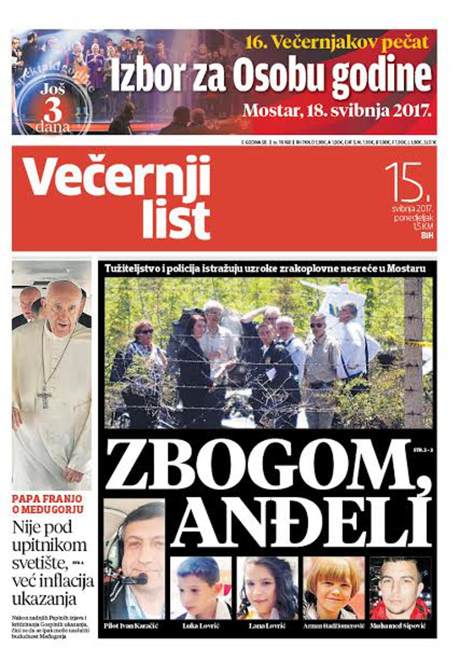 Večernji list BiH u ponedjeljak, 15. svibnja u tiskanom izdanju donosi zanimljive teme, izdvajamo samo neke od njih:
