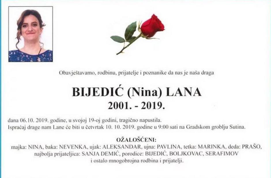 Na Facebook stranici Fakulteta informacijskih tehnologija - FIT UNMO, gdje predaje majka stradale djevojke Lane Bijedić iz Mostara, opraštaju se od tragično stradale djevojke koja je ubijena, a tijelo joj je pronađeno kod Ljubuškog.