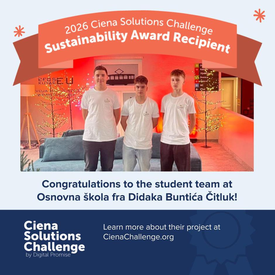 Inače, Ciena Solutions Challenge besplatni je globalni dizajnerski izazov koji poziva edukatore i učenike da dizajniraju rješenja koja se bave problemima u njihovim zajednicama. Koristeći Ciena Solutions, učenici će istražiti veliku ideju, postavljati promišljena pitanja, istražiti svoj izazov i djelovati kako bi stvorili rješenje. Počevši od rujna 2025. do 10. ožujka 2026., edukatori su se mogli prijaviti s idejama učeničkih timova za nagradu od 3000 USD za izrađene projekte.