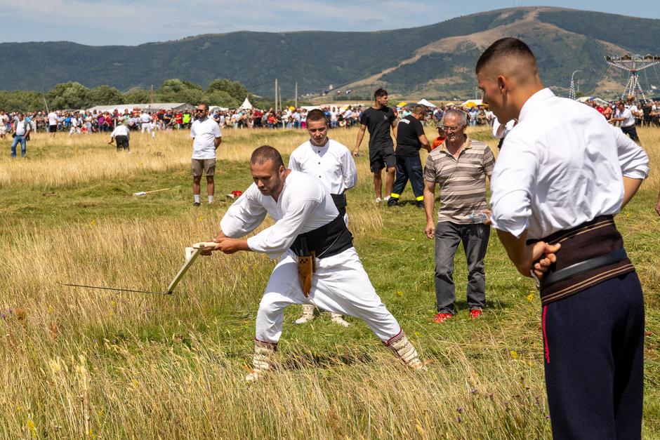 Nakon sportskih nadmetanja u starim igrama kao što su skok u dalj, bacanje kamena s ramena i potezanje konopa, slijedilo je veliko natjecanje kosaca - onih čija ruka, korak, srce i kosa još uvijek znaju što znači pokositi livadu.