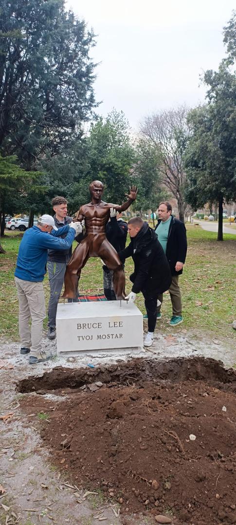 Povratak Brucea Leeja u MostarDjelo je renomiranog zagrebačkog kipara Ivana Fijolića, a postavljen je 2005. u središnjem mostarskome parku. Bilo je to na inicijativu nevladine udruge 'Urbani pokret – Mostar'', danas saborskog zastupnika Nina Raspudića i književnika Veselina Gatala.