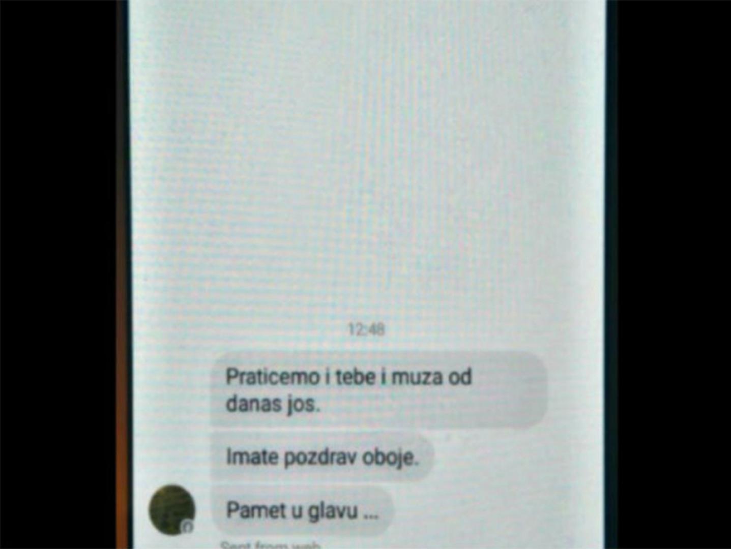 U policijskoj stanici Srebrenica potvrđeno je da je prijavljen slučaj prijetnji putem poruke: "Pratit ćemo tebe i muža od danas još... Imate pozdrav... pamet u glavu".