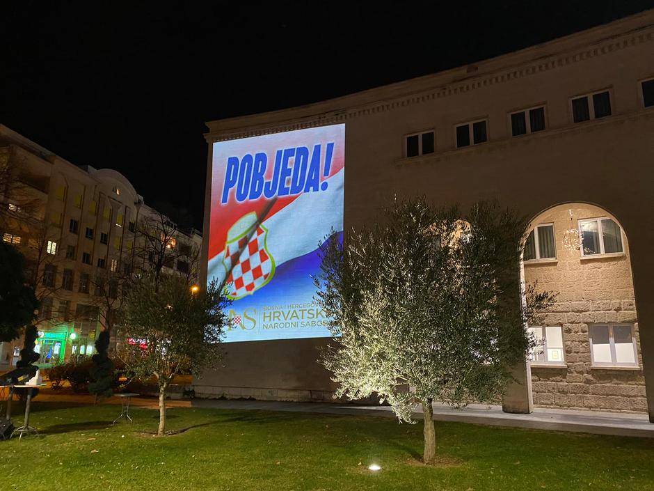 U Mostaru, na Kosači velikim slovima piše: Pobjeda! U potpisu Hrvatski narodni sabor Bosne i Hercegovine.