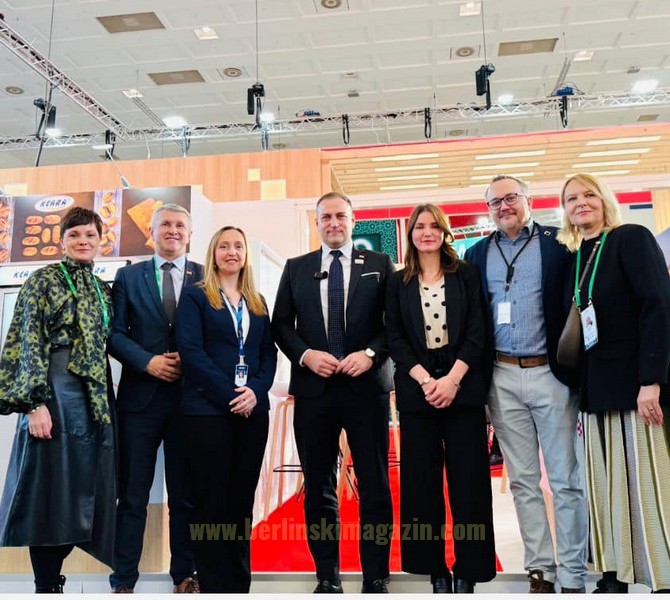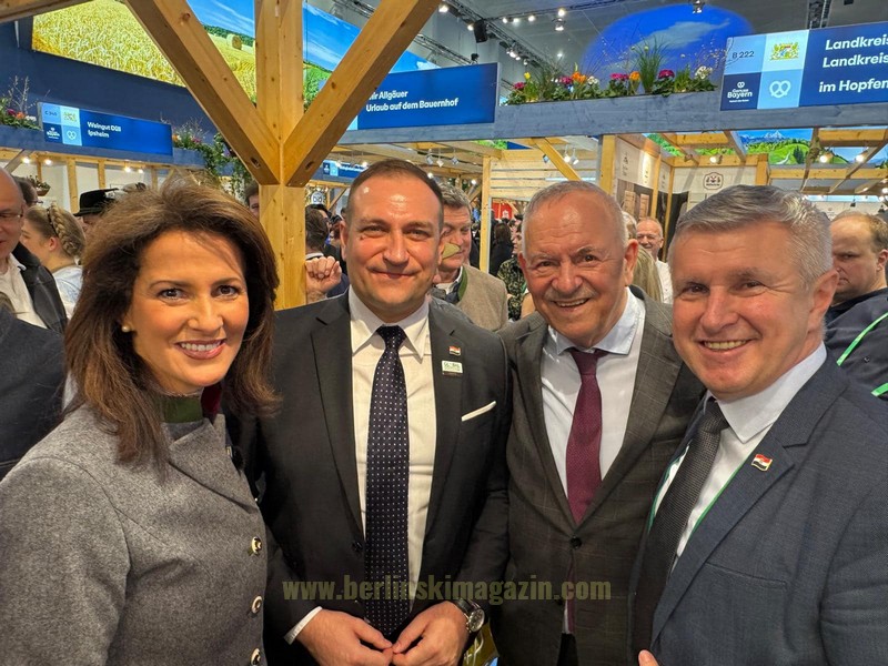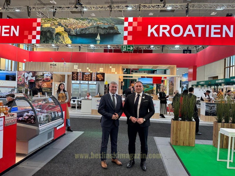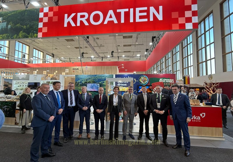 Delegaciju Ministarstva predvodi potpredsjednik Vlade i ministar poljoprivrede, šumarstva i ribarstva David Vlajčić, uz državnog tajnika Tugomira Majdaka i suradnike. Ministar Vlajčić susreo se s irskim ministrom poljoprivrede, hrane i pomorstva Martinom Heydonom te generalnim direktorom Sajma Larsom Jaegerom na otvorenju hrvatskoga izložbenog prostora, piše Željko Matić za Berlinski magazin.