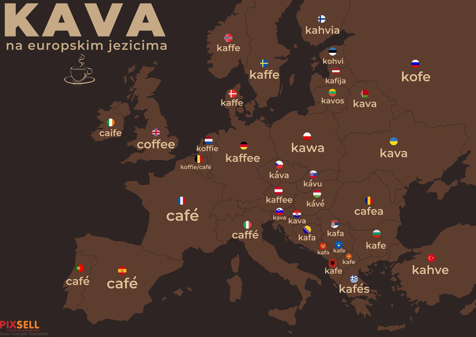 Kava govori sve jezike, a svi imaju rijec za kavu - infografika pokazuje kavu na jezicima Europe. Photo: Marko Picek/PIXSELL