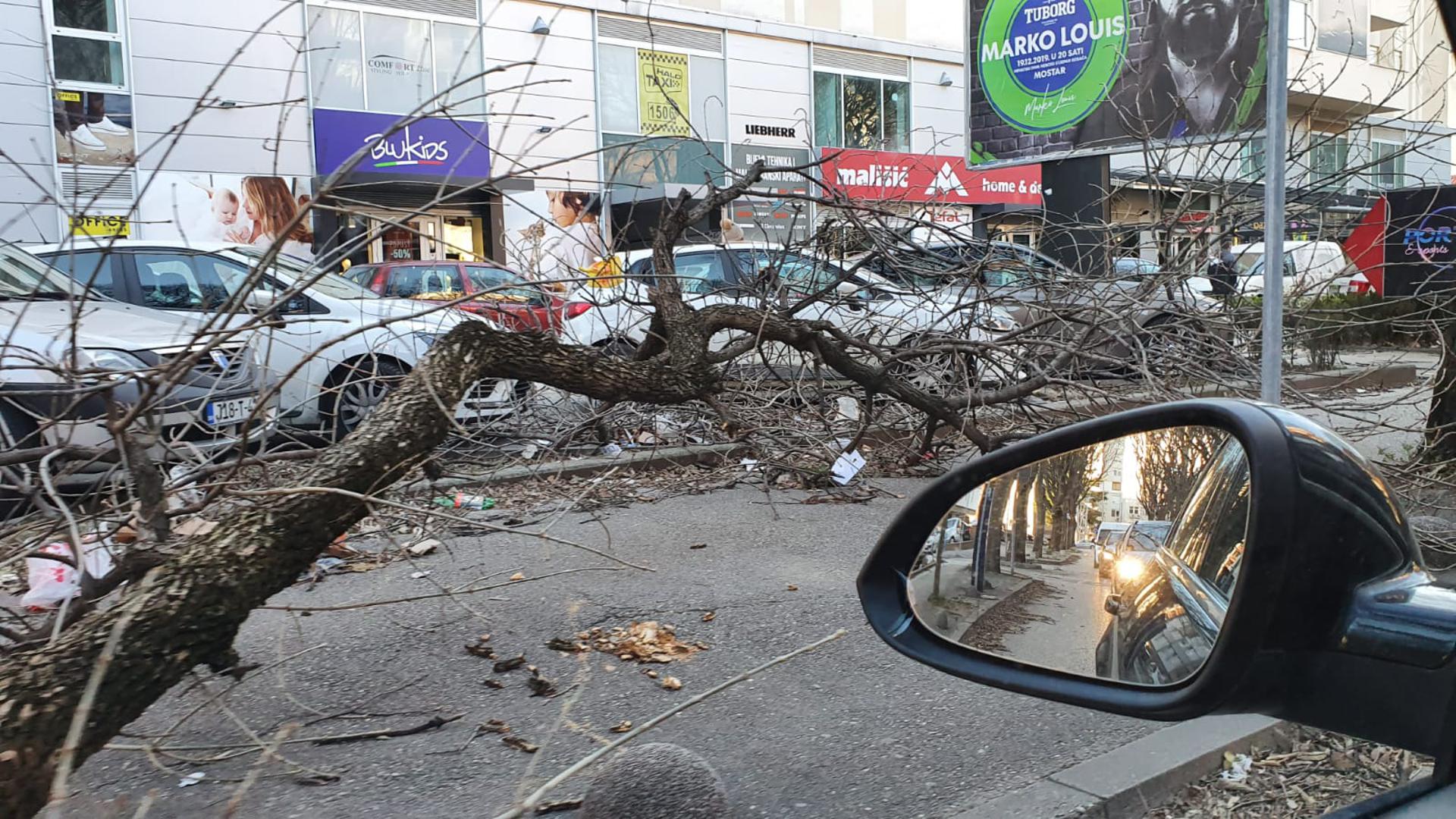 Na brojne ceste u gradu vjetar je srušio drveće i grane, ista je situacija i u okolici Mostara, pa su tako ceste na izlazu iz grada na više mjesta bile blokirane drvećem.