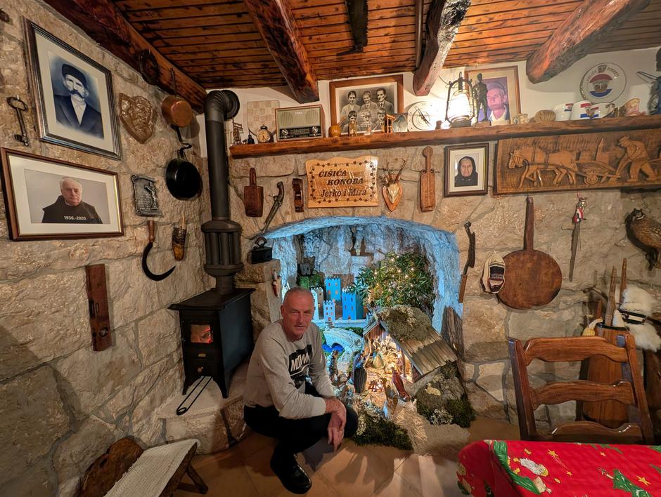 - Najprije stavim bor i struju na njega, a onda podno njega montiram grad, također struju u svaku kućicu. Onda montiram štalicu, a mora se vidjeti i vatra. Sav materijal čine kamen, mahovina i drvo, sve je prirodno, sve je hercegovačko, dvije tri vrste mahovine, lišajevi... - priča nam. Dok to govori, jasno je da ne opisuje samo tehniku nego i filozofiju - jer svaka ta sitnica ima svoje mjesto, baš kao što i svaki čovjek ima svoje mjesto u priči koju zovemo zajednica. Prostorija u kojoj se jaslice nalaze, u kojoj se Krist uvijek iznova rađa, danas je svojevrsni muzej iznad Gruda i tko se želi upoznati sa starinama i s poviješću Gruda i Hercegovine, može doći u ovaj bogati kutak i oživiti dašak prošlosti. U tom prostoru ne stoje samo predmeti, nego stoje tragovi ljudi, vremena i običaja koji se ne smiju prepustiti zaboravu jer bez njih bismo i sami postali siromašniji.