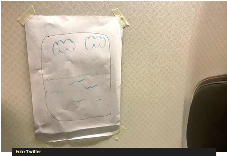 Cijela priča završila je na Twitteru, jedna od putnika objavio je fotografiju i ispričao zašto je iscrtani komad papira zalijepljen na zidu kabine pored putnika, a ubrzo je njegova objava postala viralni hit na toj društvenoj mreži.