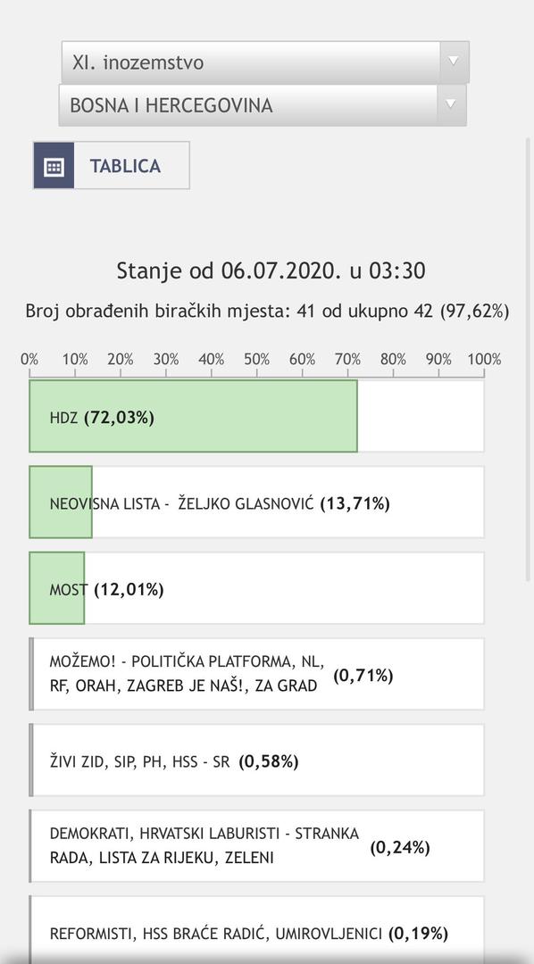 Kako je glasovala dijaspora: U BiH vodi HDZ sa 72,03 posto