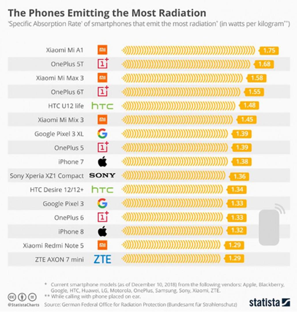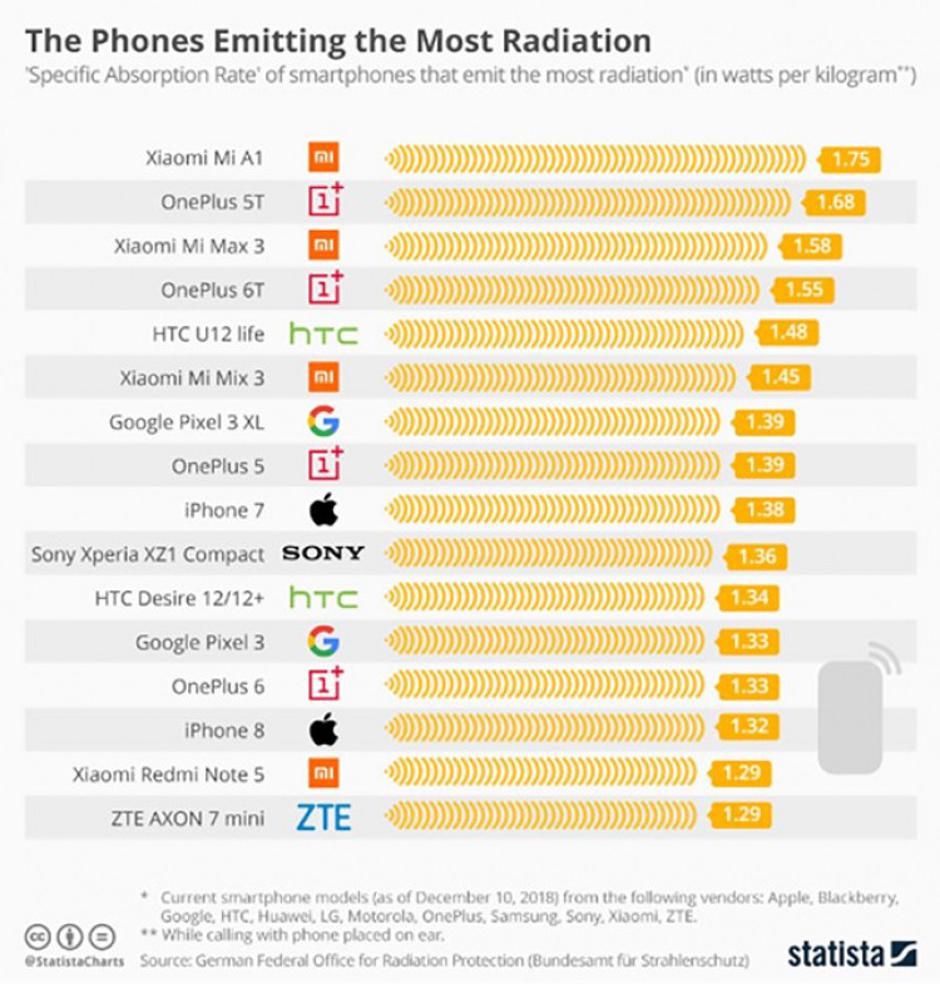 ​Izvešće koje je objavio Njemački federalni ured za zaštitu od radijacije otkriva koji smartfoni stvaraju najviše, a koji najmanje radijacije.