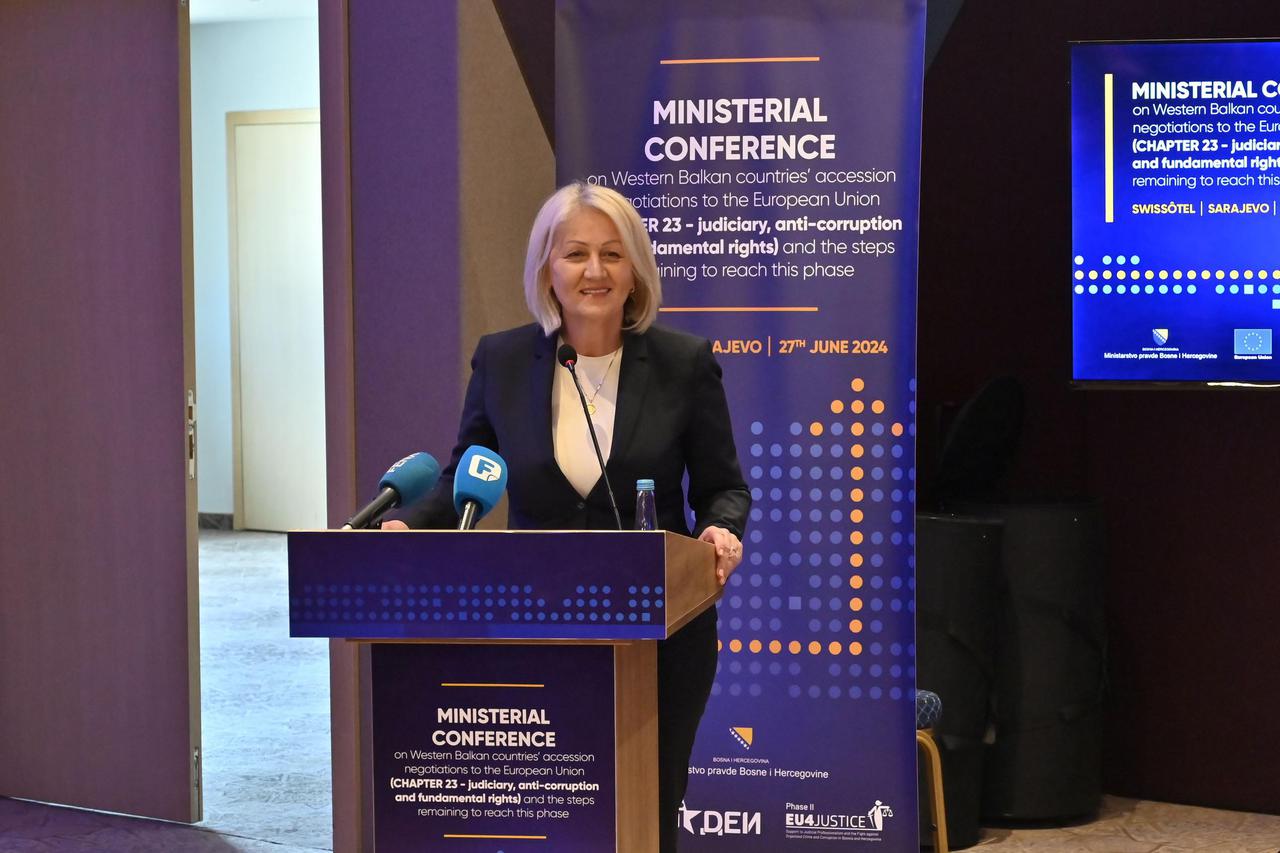 Predsjedateljica Vijeća ministara BiH Borjana Krišto otvorila je danas u Sarajevu ministarsku konferenciju na temu pregovora o pristupanju zemalja Zapadnog Balkana Europskoj uniji (pregovaračko poglavlje 23 – pravosuđe, borba protiv korupcije i temeljna prava).