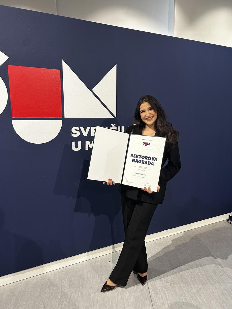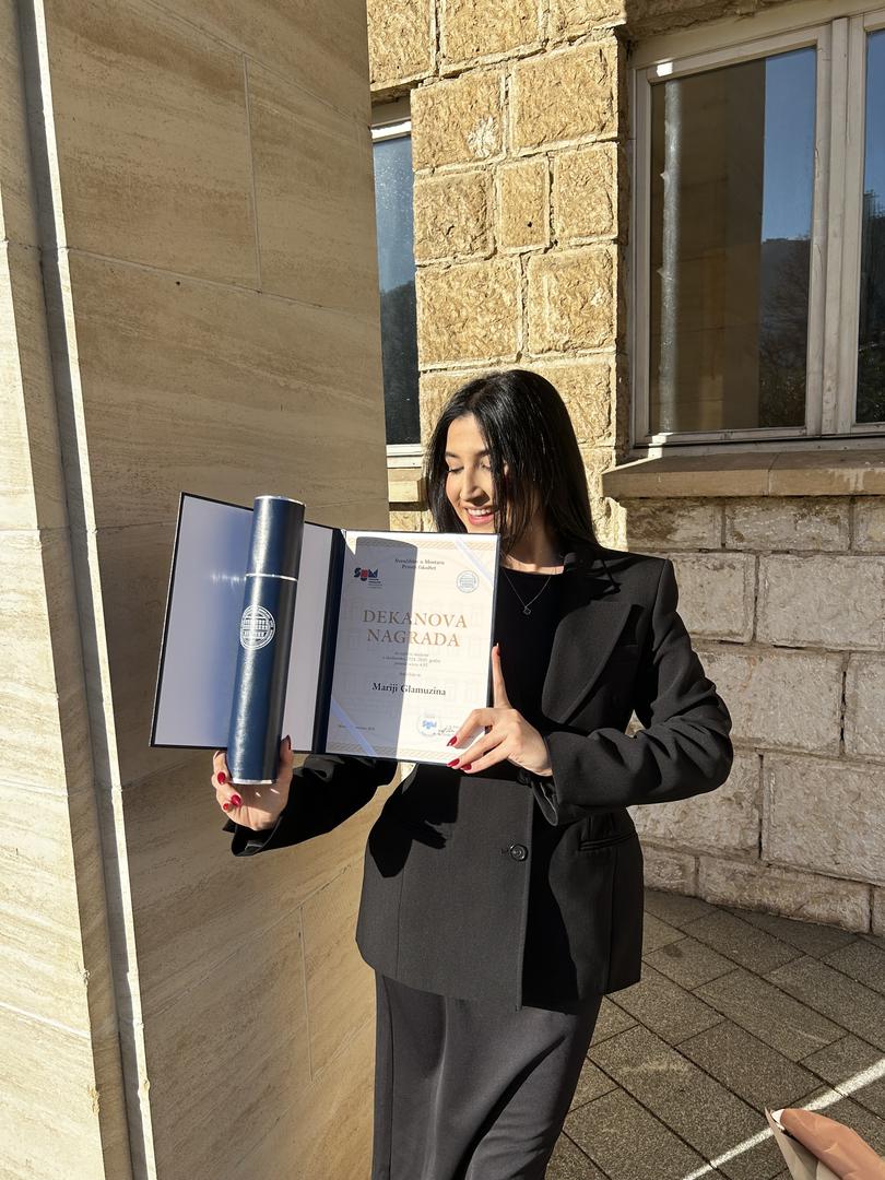 Ove godine Rektorovu nagradu dobila su 23 studenta, a ekipa portala Večernji.ba predstavlja ih pojedinačno na svojim stranicama. Među dobitnicima Rektorove nagrade za uspjeh u studiranju za akademsku godinu 2024./2025. je i Marija Glamuzina, magistrica prava iz Čitluka.
