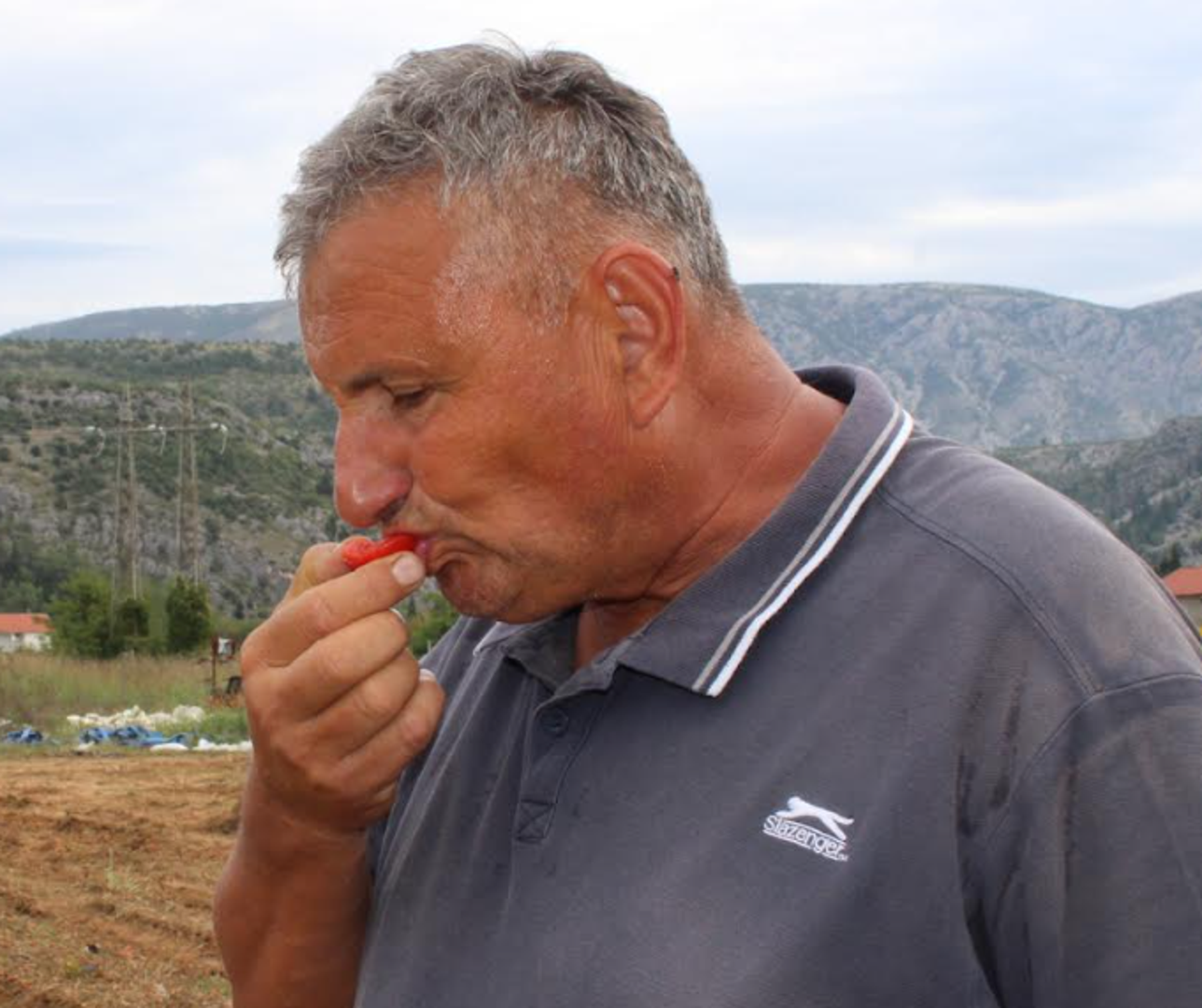 Ovih dana u Vidovu polju kod Stoca ponovno susrećemo Marinka Merdžana kako skuplja opremu nakon intenzivne berbe rajčica za Marinadinu tvornicu za preradu voća i povrća u Kruševu kod Mostara, prvu takve vrste u BiH. Berba nije bila mala stvar.