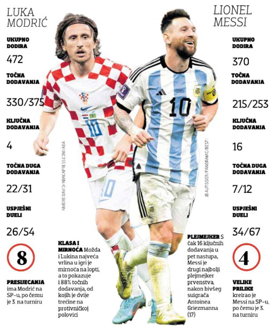 Ta činjenica da vas Hrvatska nerijetko zna iznervirati s loptom u nogama kad možda želite i pritisnuti, zna izluditi velike momčadi, a Argentina, koja se voli braniti agresivno i temperamentno, mora pripaziti jer Luka Modrić i Mateo Kovačić su među najboljim veznim igračima svijeta u izbjegavanju pritiska driblingom ili dodavanjem čime si često stvore povoljne situacije.