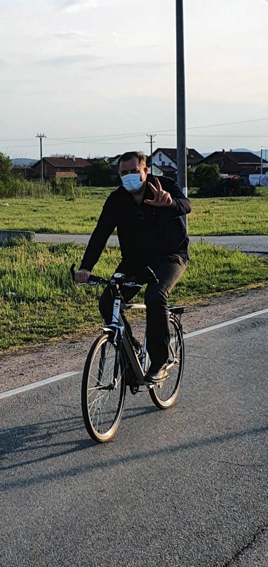Dodik je sa zaštitnom maskom, prije policijskog sata, na biciklu prošao od kuće do sela Mrčajevci.
