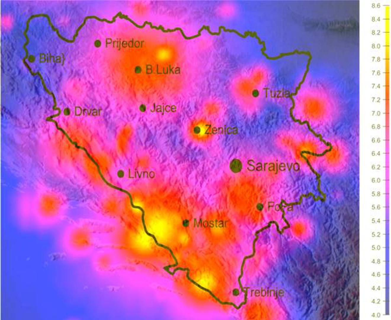 - Na samoj teritoriji BiH gotovo svakodnevno se javljaju, u prosjeku, tri potresa intenziteta manjeg od III stupnja Merkalijeve ljestvice, koje registruju samo instrumenti. Snažniji potresi su relativno rijetki. Dubina hipocentra se kreće od 4 do 30 km. Od tog broja, svake godine bude desetak potresa koji mogu izazvati osjetljivo podrhtavanje tla ili nanijeti materijalnu štetu na građevinskim objektima. Od 1900. godine, od kada se na ovom području potresi instrumentalno registriraju zabilježeno je 1084 potresa čija magnituda je bila više od 3,0 Rihtera ili intenzitet veći od V stupnjeva Merkalijeve ljestvice, odnosno to su potresi koji su izazvali materijalne štete ili su odnijeli ljudske živote- istaknuto je na stranici.