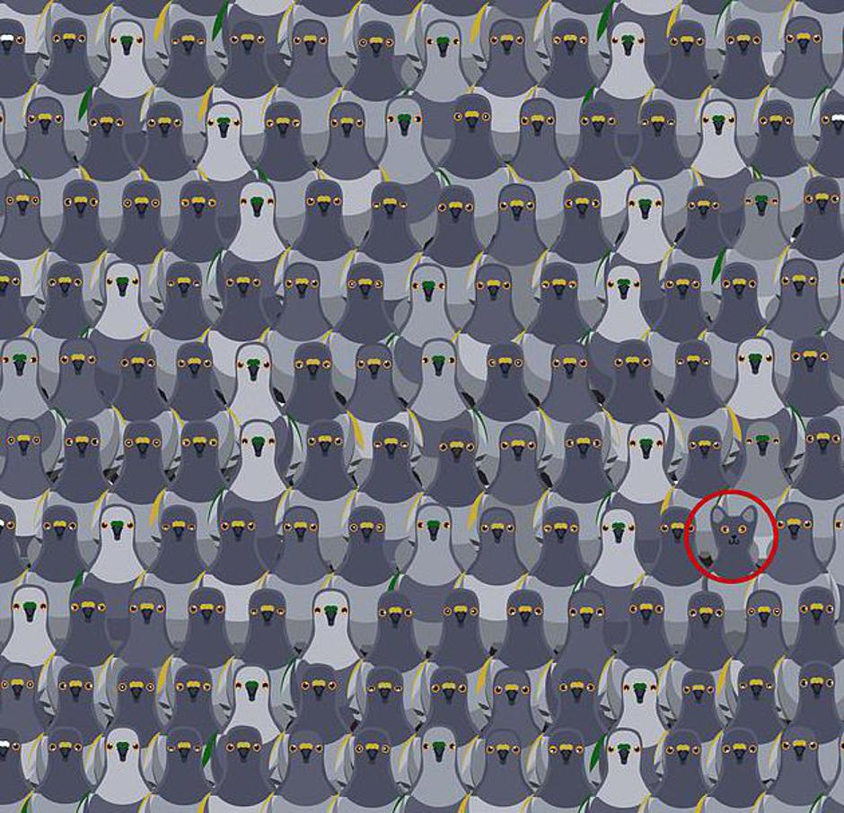 Među hrpom sivih golubova krije se jedna mačka. Prosječno vrijeme koje je potrebno da se pronađe maca je 18 sekundi.
