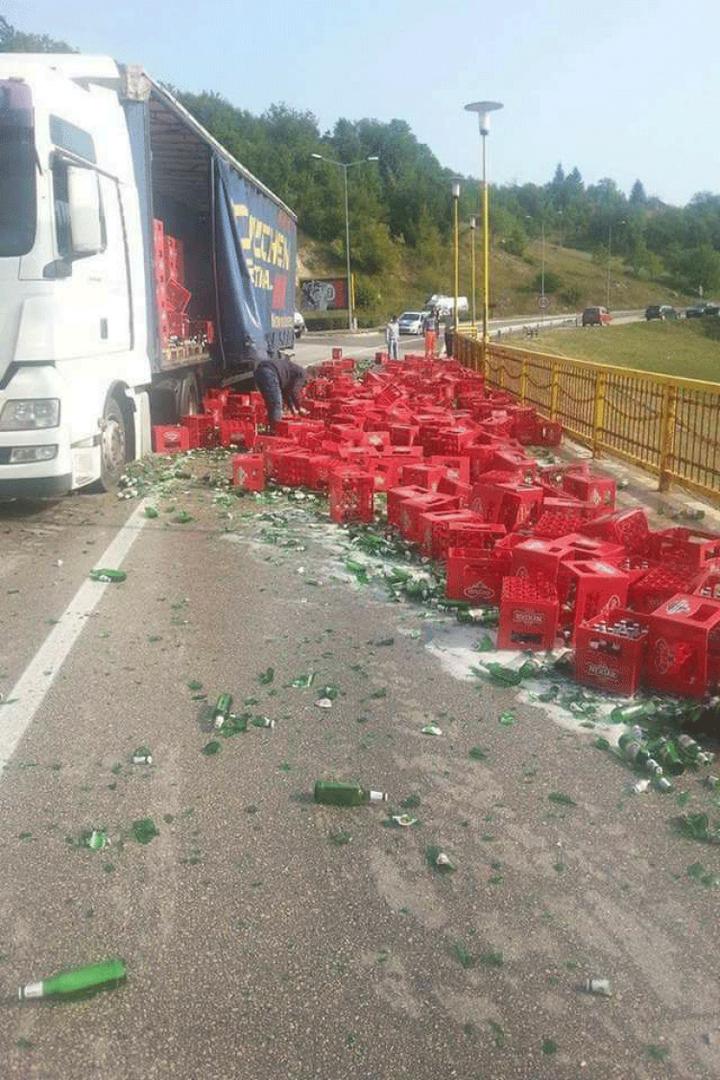 Na petlji u Mrkonjić Gradu, sa šlepera je skliznulo nekoliko paleta piva, potvrđeno je "Nezavisnim".