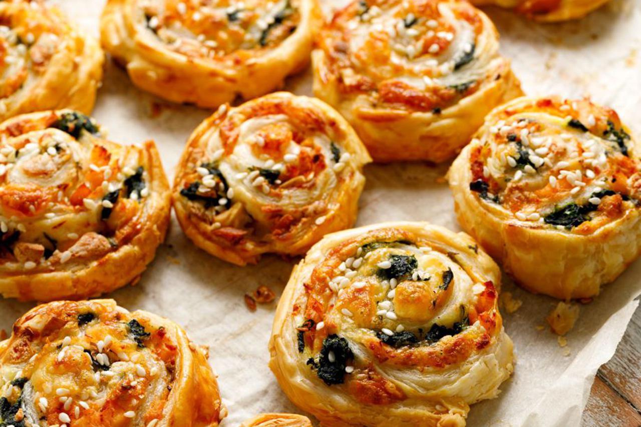 Cijeli proces možete započeti i pirjanjem sitno nasjeckanog luka na maslacu, pomiješati ga sa češnjakom i svježim listićima špinata pa smjesu pomiješati sa sirnim namazom prije stavljanja na lisnato tijesto.