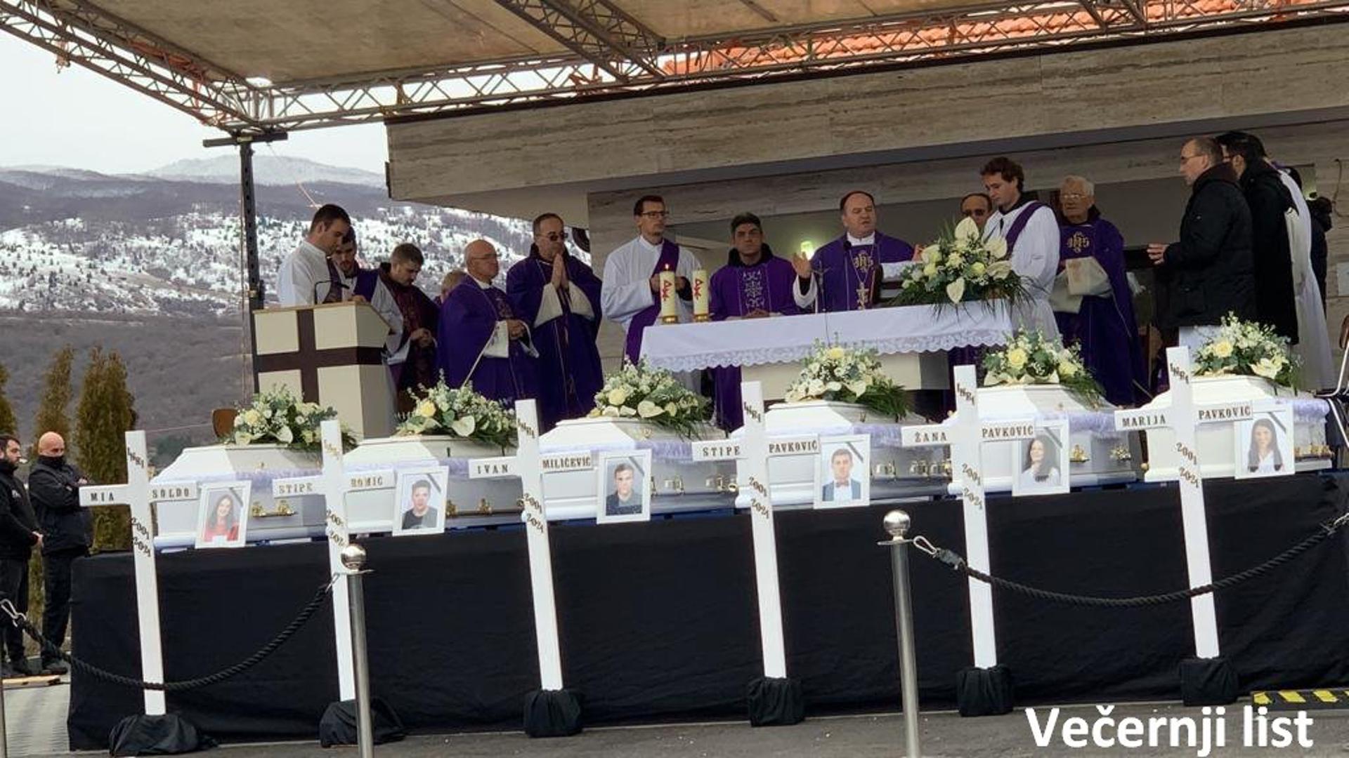 Župnik fra Marinko Leko od suza je jedva uspio dovršiti obrede. Šest mladih upućeno je na tri groblja Ivanovica groblje, Petrovića groblje i Stećci.