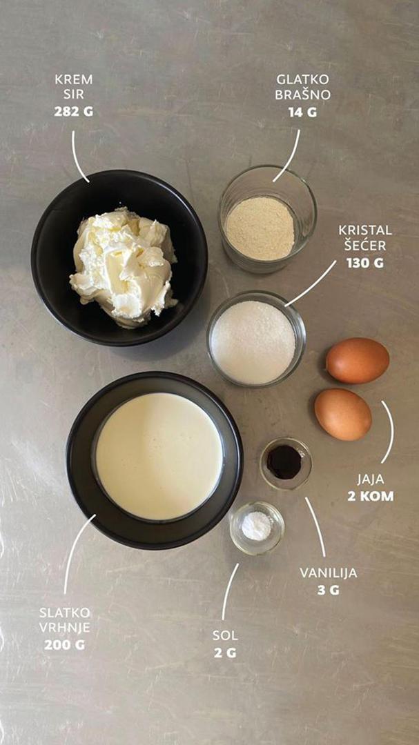 Recept se sastoji od klasičnih sastojaka za cheesecake, ali razlikuje se po tome što nema podlogu i što se peče na visokoj temperaturi kojom se postiže naizgled "zagorena" korica.