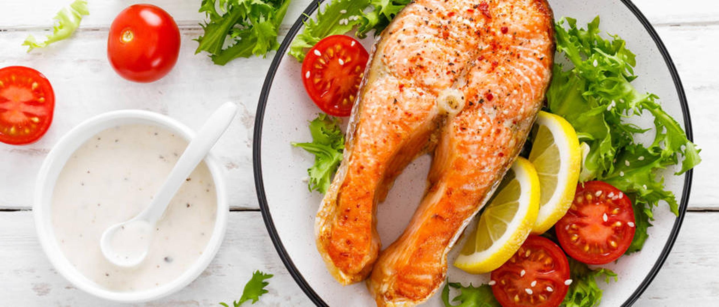 To otprilike izgleda kao pola tanjura neškrobnog povrća, četvrtina čistih proteina (primjerice, losos) i četvrtina žitarica ili nekog škrobnog povrća (primjerice, smeđa riža) zajedno sa žlicom maslinova ulja.