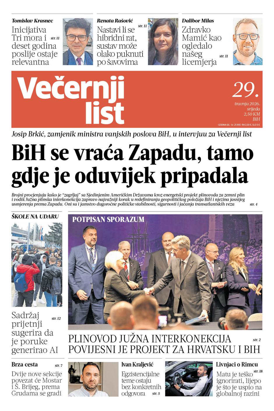 Josip Brkić, Zamjenik ministra vanjskih poslova BiH, u intervjuu za Večernji list