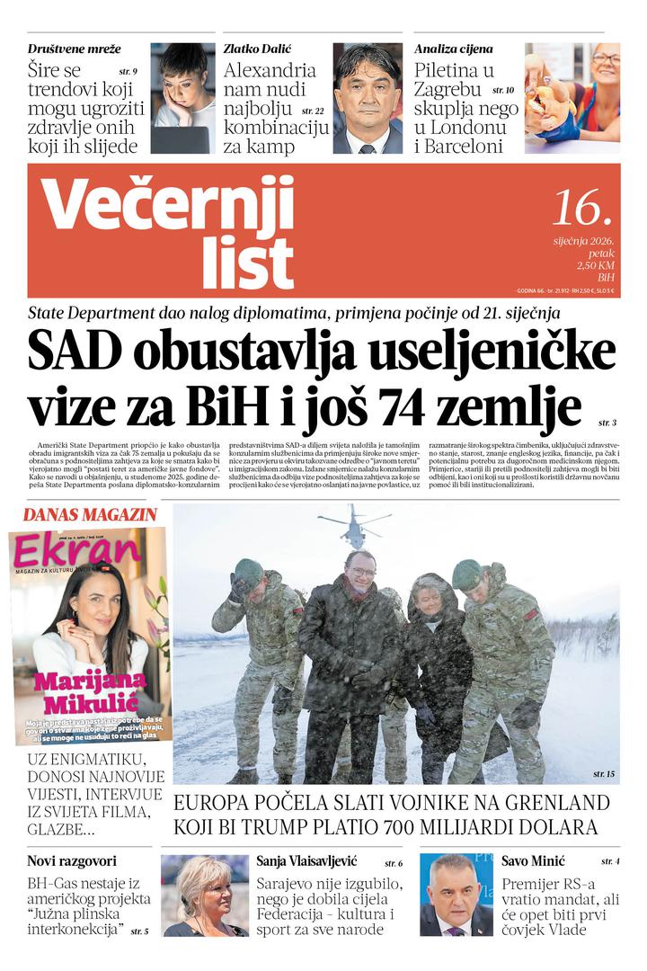 U tiskanome izdanju Večernjeg lista BiH u petak, 16. siječnja 2026. godine, među ostalim, možete pročitati: