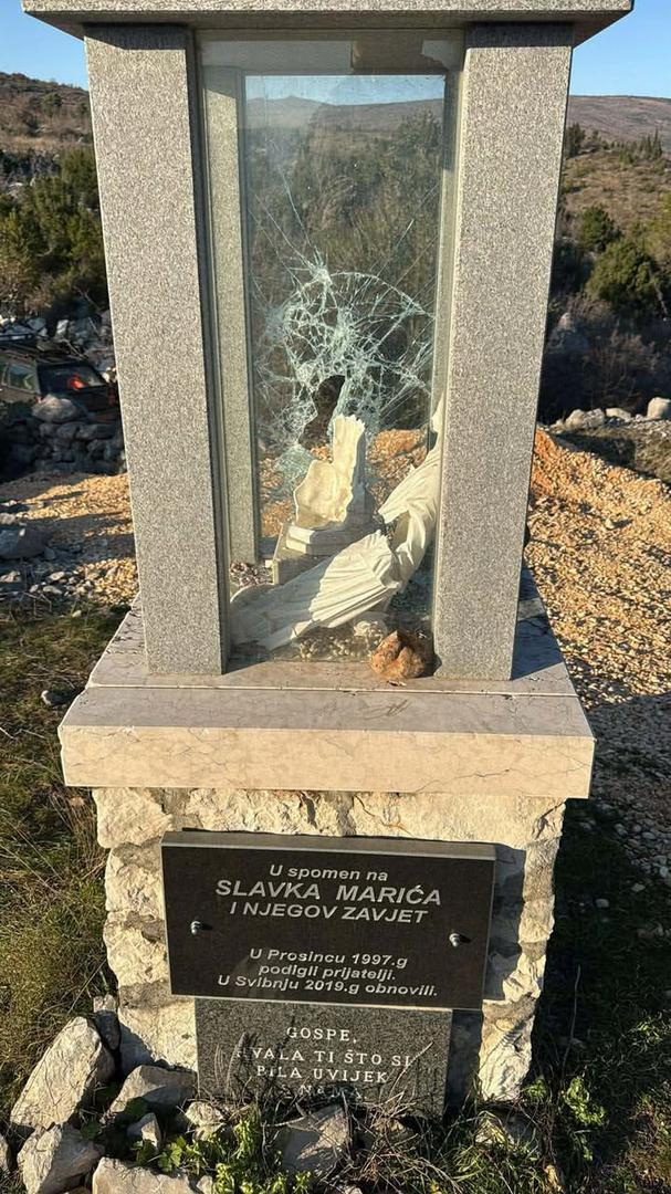 Na brdu Gradina iznad Čapljine nepoznati počinitelji vandalizirali su kip Blažene Djevice Marije, koji ovo mjesto krasi od 1997. godine. Spomenik je pronađen s vidljivim znakovima oštećenja: kip je slomljen, a staklena zaštita oko statue potpuno razbijena. Prema svjedočanstvima mještana, koji su u ranim jutarnjim satima uočili posljedice, spomenik je uništen grubom silom, a krhotine stakla i dijelovi statue razbacani su oko postolja.