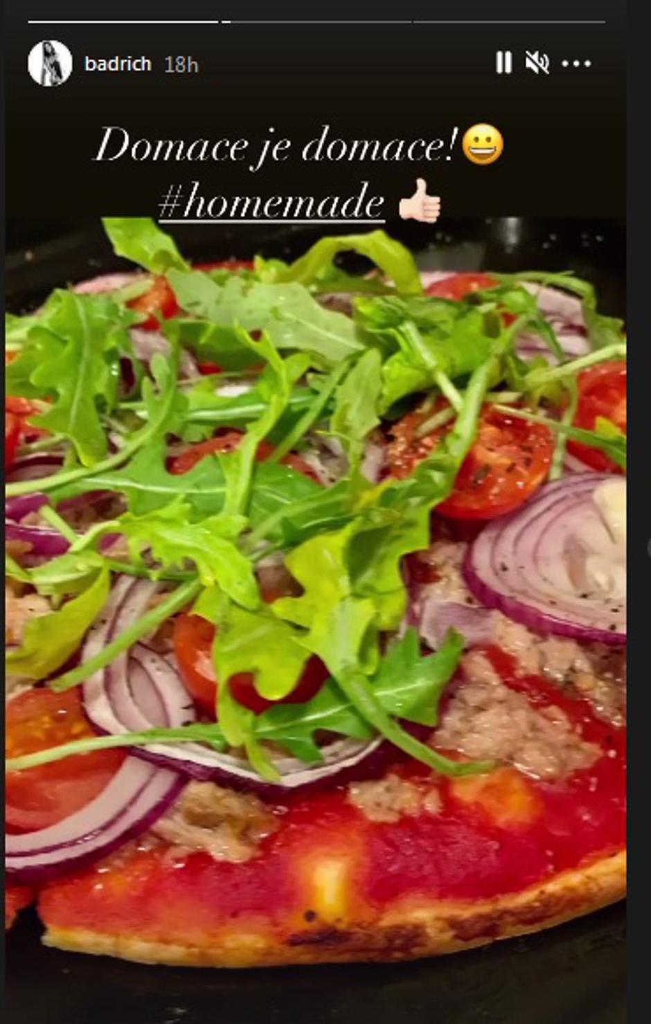 "Domaća pizza bez glutena. Nakon što sam okopala krumpir umijesila sam tijesto bez glutena i napravila domaću pizzu od tune, srdela, paradajza i luka. Za mene nema zime, posla uvijek ima, a meni je moja pizza najbolja", napisala je uz fotku pizze koju je objavila na Insta storyju.