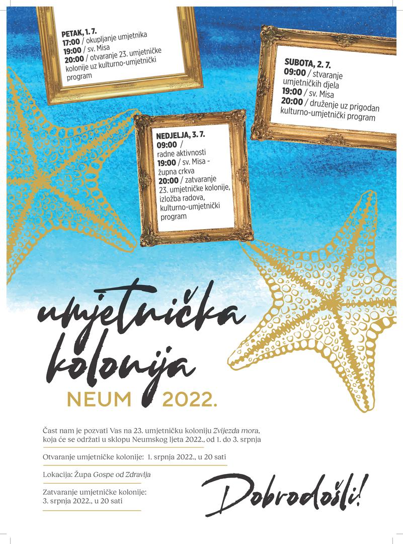 Ovogodišnja 23. umjetnička kolonija “Neum 2022.” održati od 1. do 3. srpnja, u sklopu Neumskog ljeta.
