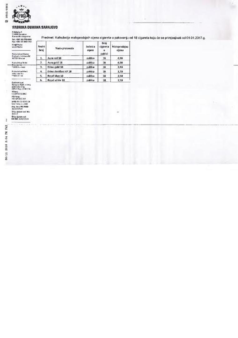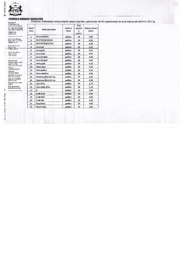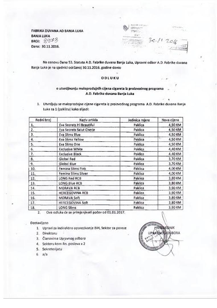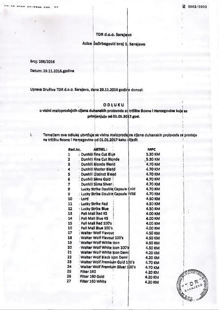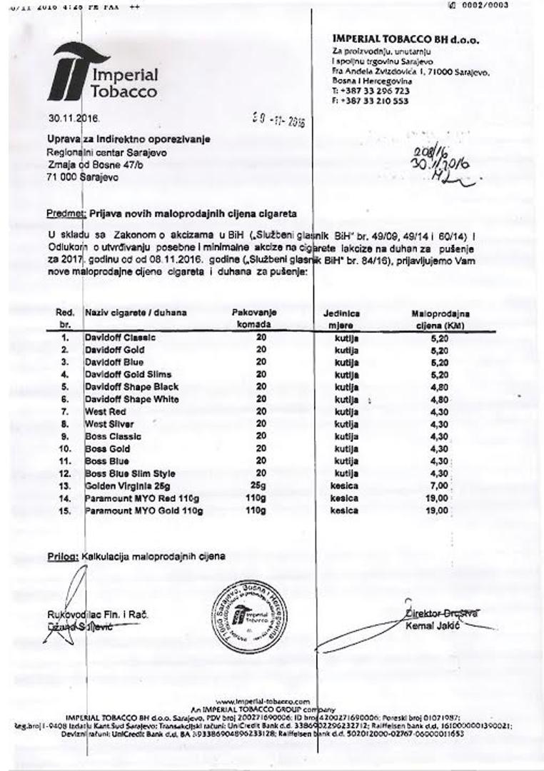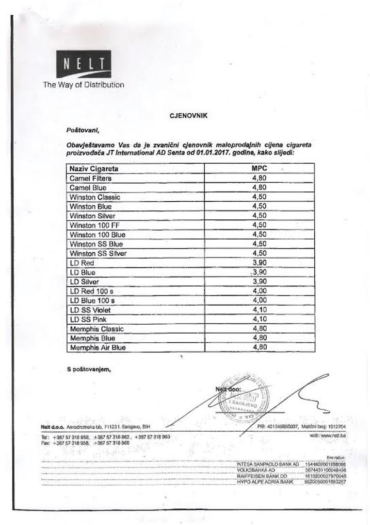 Od 1. siječnja 2017. nove cijene cigareta u BiH