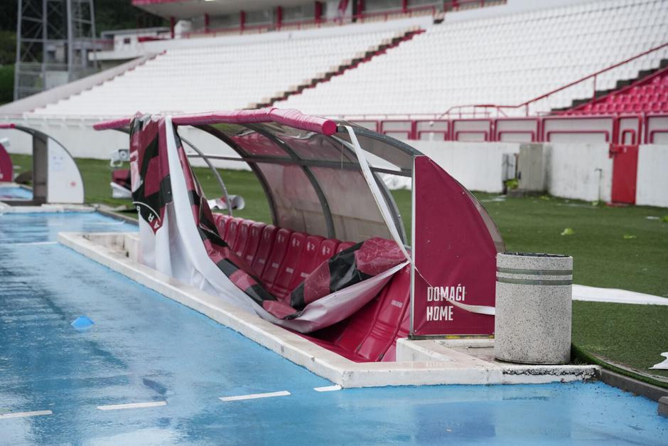 Nevrijeme je, između ostalog, oštetilo klupe za pričuvne igrače, pokretni tunel, semafor, kontrolni kontejner, a razmjere udara vjetra najbolje ilustrira činjenica da je oštećen jedan od golova na glavnom terenu, dok su klupe s pomoćnog terena završile na 150 metara udaljenom stadionskom parkingu.