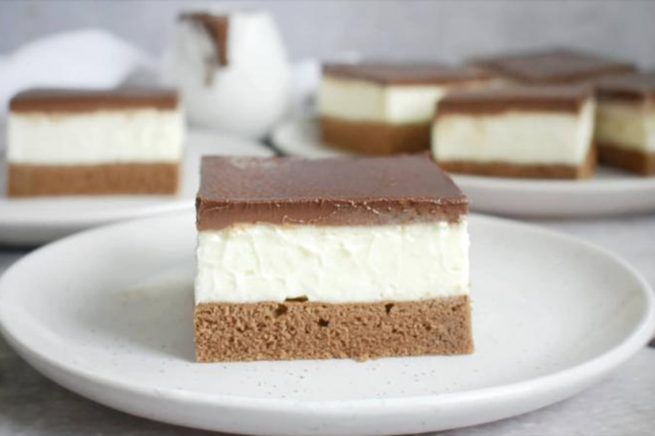 Prelij sitno narezanu čokoladu i ostavite minutu, a zatim dobro promiješaj da se sve sjedini i čokolada otopi. Pusti da se malo ohladi pa prelij preko bijele kreme.