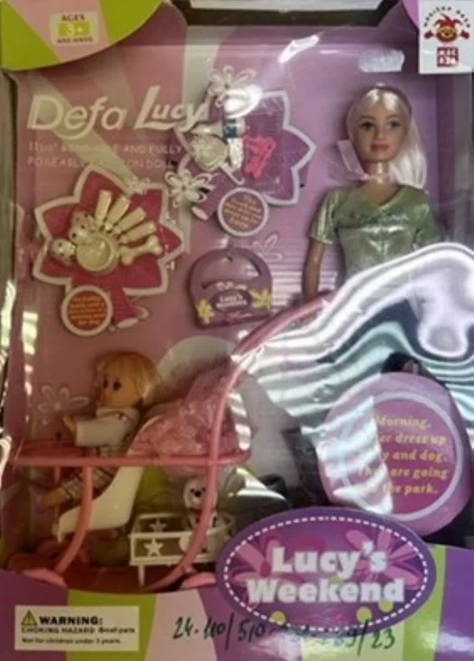 - Riječ je o kineskoj igrački "Defa Lucy Lucys weekend" - defa lutka s kolicima, bebom i ljubimcem koja ima bar kod: 6937620509580.