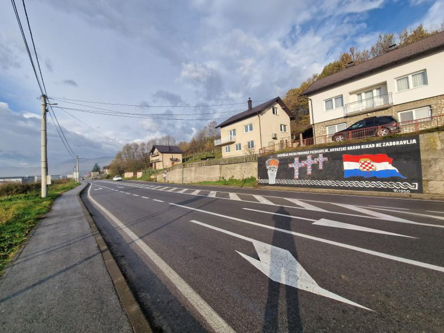 Na crnoj podlozi ispisana je poruka ‘Središnja Bosna Vukovar pozdravlja, Hrvatski narod nikad ne zaboravlja”.
