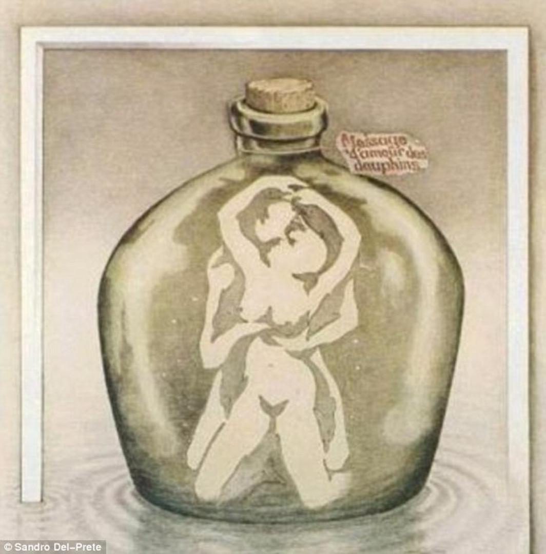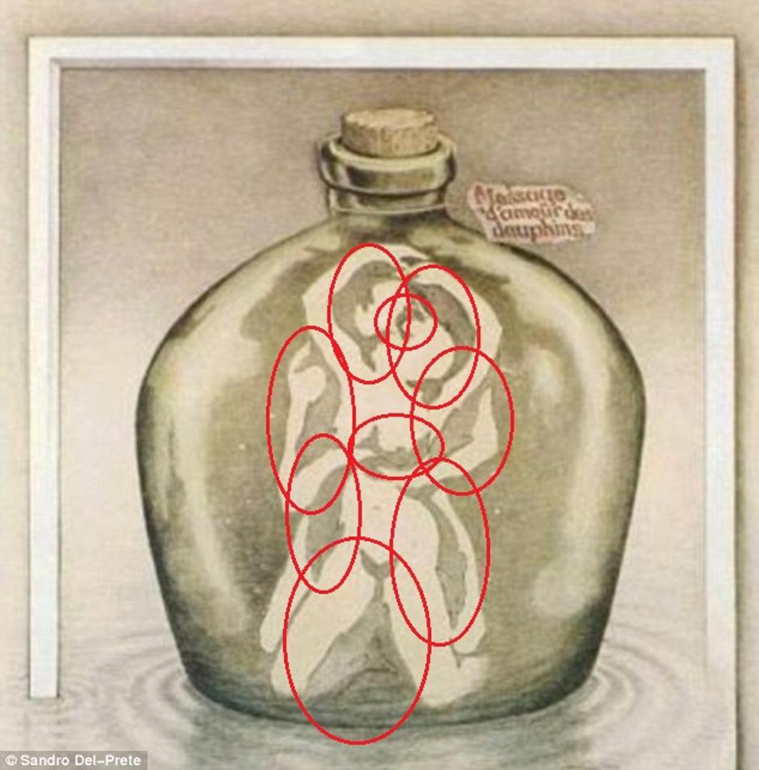 Ova slika zapravo se sastoji od devet delfina koji su tako posloženi da tvore par u strasnom zagrljaju. Ovu optičku iluziju napravio je umjetnik Sandro del Prete. Odrasli češće prvo vide muškarca i ženu, a djeca u pravilu vide delfine.