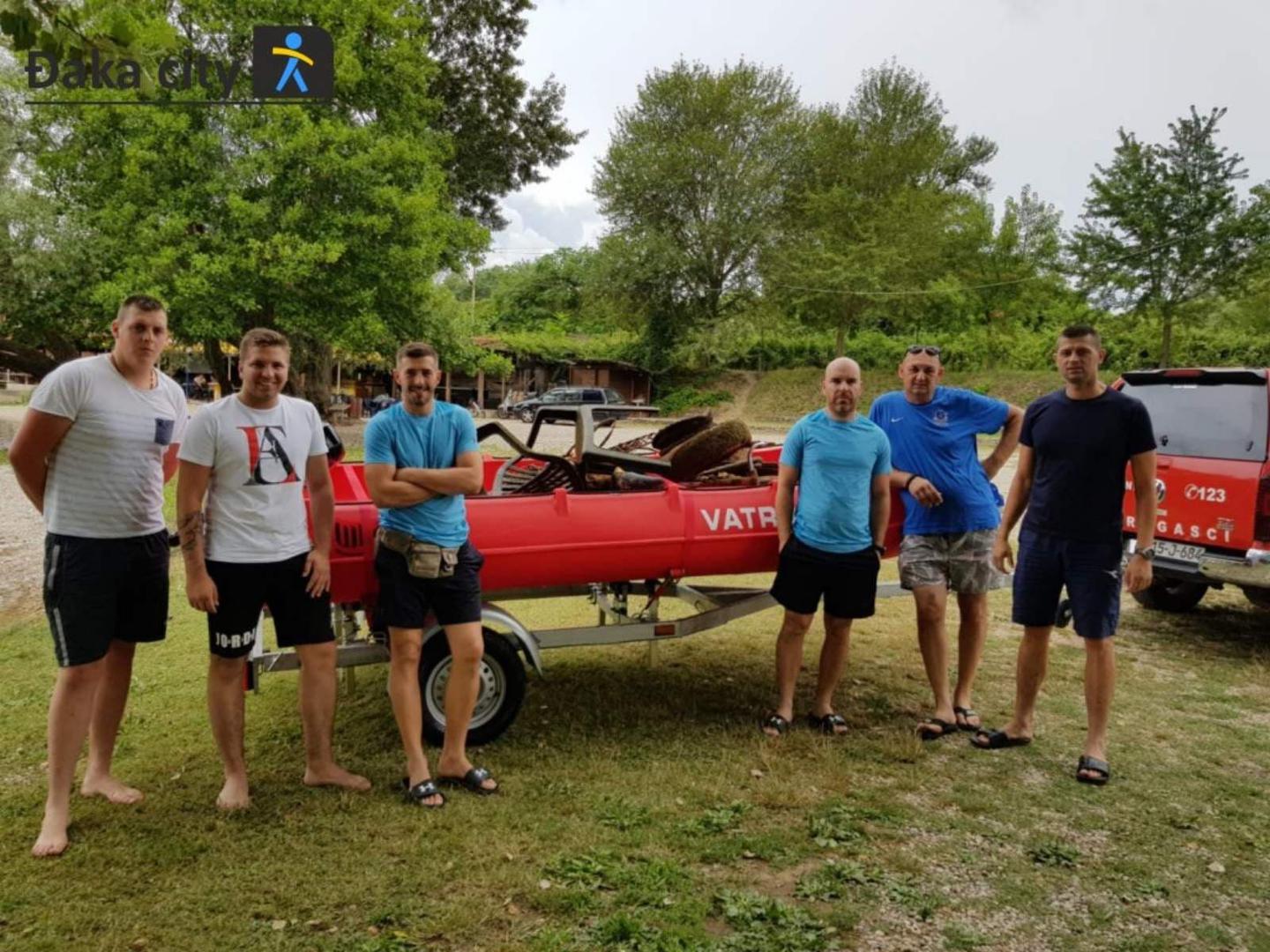 Potraga je uspješno završena. Stigavši na odredište, samo 30-ak metara uzvodno od kupališta, Jerkić nam pokazuje mjesto u vodi gdje su nađeni ostaci kamene konstrukcije.