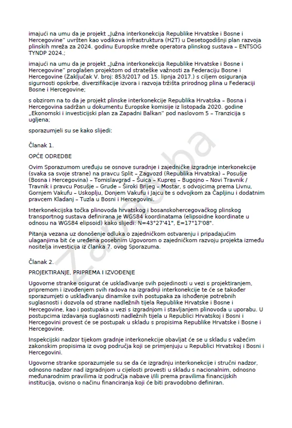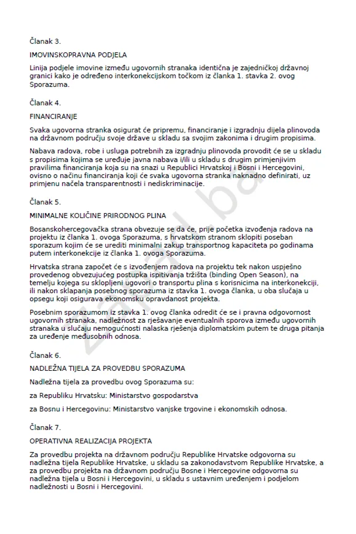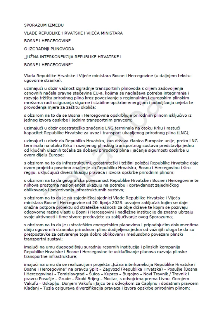Riječ je, kako navodi zapad.ba, o Sporazumu o izgradnji plinovoda „Južna interkonekcija Republike Hrvatske i Bosne i Hercegovine“, koji predstavlja jedan od najvažnijih infrastrukturnih i energetskih projekata u novijoj povijesti BiH.