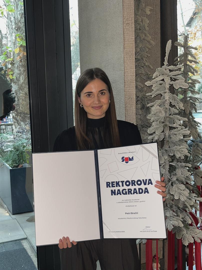 Govoreći o značaju dobivanja Rektorove nagrade, Petra ističe kako je riječ o priznanju koje doživljava kao potvrdu dosadašnjeg rada i uloženog truda. „Cijeli studij bila sam vrlo aktivna u svim sferama života, pa tako i na fakultetu, ali sam uvijek uspijevala dobro organizirati svoje vrijeme i uskladiti obaveze. Iako to nije uvijek bilo lako, za mene je bilo izvedivo. Dobivanje ove nagrade smatram iznimno vrijednim priznanjem koje uistinu cijenim“, naglašava Petra u razgovoru za Vecernji.ba. Dodaje kako vjeruje da će stečeno znanje, koje ju je dovelo do ovog uspjeha, biti primjenjivo i od koristi ljudima kojima će služiti kroz svoj budući liječnički rad.