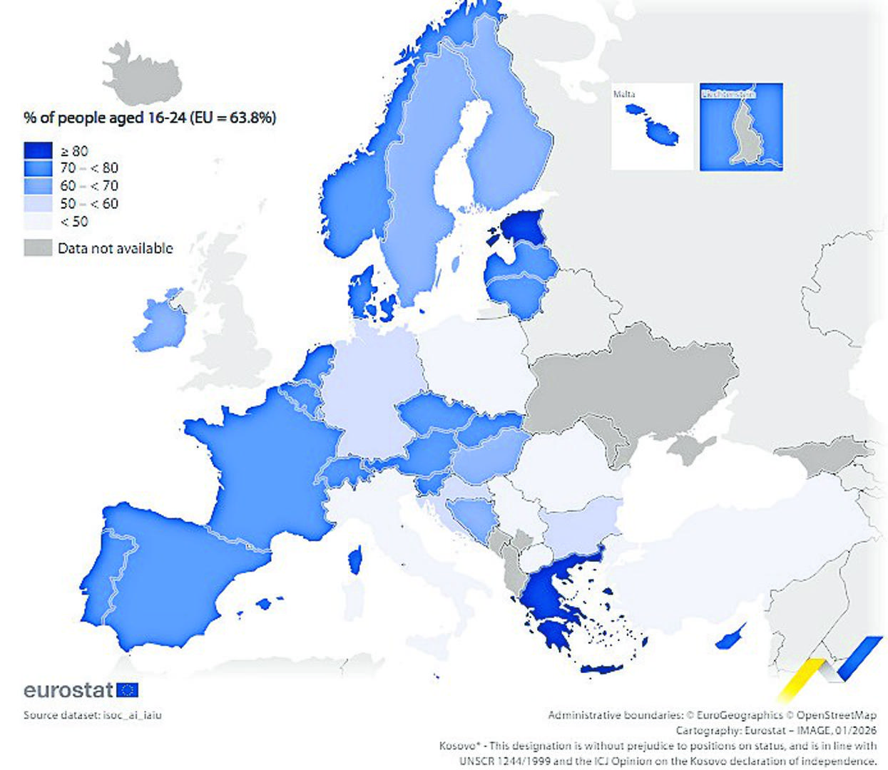 Među zemljama EU-a najveći udio mladih od 16 do 24 godine koji koriste generativne AI alate zabilježen je u Grčkoj (83,5 posto), Estoniji (82,) i Češkoj (78,5 posto). Najniži udio, prema objavljenim pokazateljima Eurostata, bio je u Rumunjskoj (44,1), Italiji (47,2) i Poljskoj (49,3 posto). Kada je riječ o Bosni i Hercegovini, 65,4 posto stanovništva između 16 - 24 godine koristilo je alate umjetne inteligencije u prošloj godini. Ovi rezultati pokazuju kako su mladi u BiH na vodećoj poziciji u primjeni alata AI-ja u bližem, pa i širem okružju. Primjerice, taj postotak u susjednoj Hrvatskoj bio je 58,16%, Srbiji 46,97 i Sjevernoj Makedoniji 45,37%. Podaci za susjednu Crnu Goru, kao i Kosovo i Albaniju, nisu raspoloživi. Također, podaci nisu dani za Rusiju, Bjelorusiju, Ukrajinu i, zanimljivo, Veliku Britaniju. Bosna i Hercegovina u promatranim podacima bolje stoji i od Njemačke s 52,7, Italije s 47,2, Poljske s 49,3 i Rumunjske s 44,1 posto mladih koji koriste generativne AI alate u svakodnevnom životu i radu.