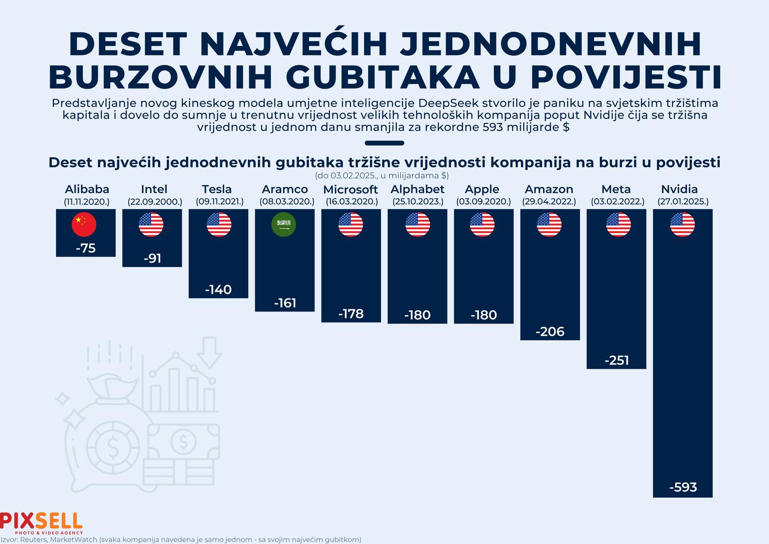 Predstavljanje novog kineskog modela umjetne inteligencije DeepSeek stvorilo je paniku na svjetskim tržištima kapitala i dovelo do sumnje u trenutačnu vrijednost velikih tehnoloških kompanija, poput Nvidije, čija se tržišna vrijednost u jednom danu smanjila za rekordne 593 milijarde dolara.