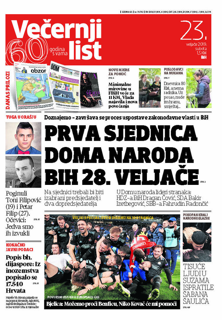 U Večernjem listu BiH u tiskanom izdanju u subotu, 23. veljače 2019. godine čitajte: