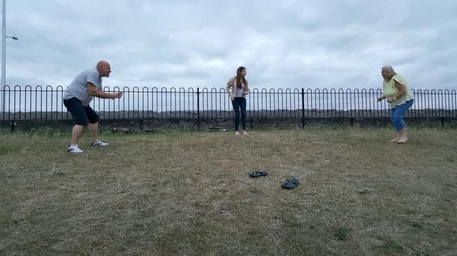 Nisu ni slutili kako će umjesto gracioznog podizanja iznad zemlje završiti u bolnici. Andy nije uspio podići Sharon, kao što je to učinio Patrick Swayze. Umjesto toga, zabili su se jedno u drugo svom silinom, koja ih je ''nokautirala'' i bacila na zemlju.