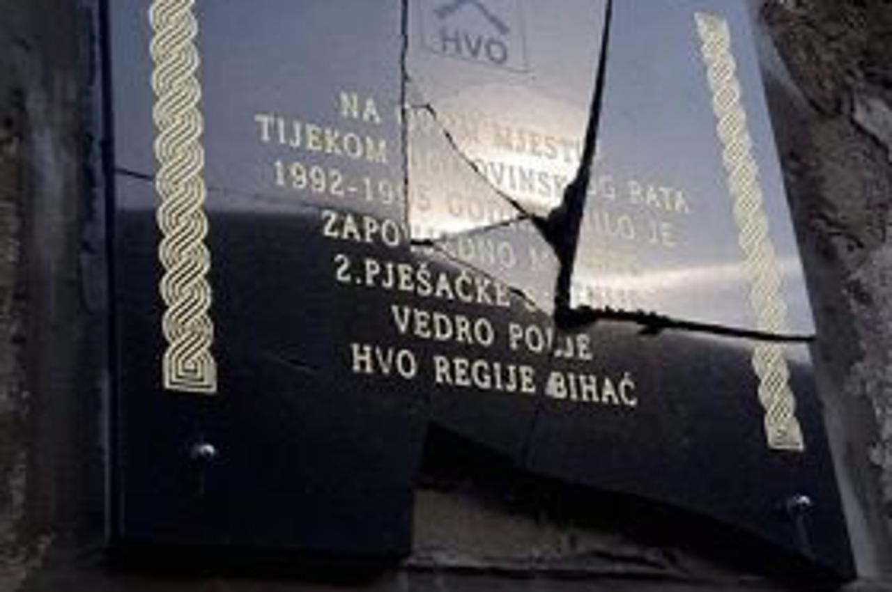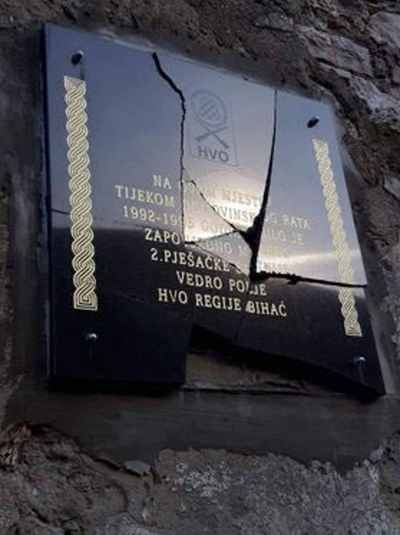 Nepoznati počinitelji razbili su spomen ploču nedaleko Bihaća postavljenu u spomen na branitelje poginule u Domovinskome ratu te ulogu Hrvatskog vijeća obrane u obrani ovoga grada što je drugi put u godinu dana da se na meti našlo ovo spomen obilježje, izvijestile su u utorak braniteljske udruge HVO-a.