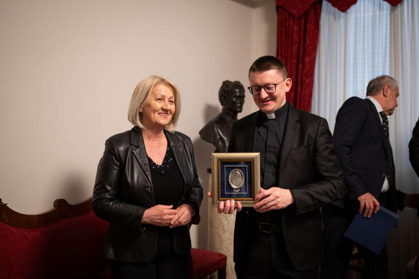 Danas je upriličena posjeta Hrvatskom Papinskom Zavodu sv. Jeronima u Rimu gdje se susrela s rektorom Zavoda mons. Markom Đurinom.