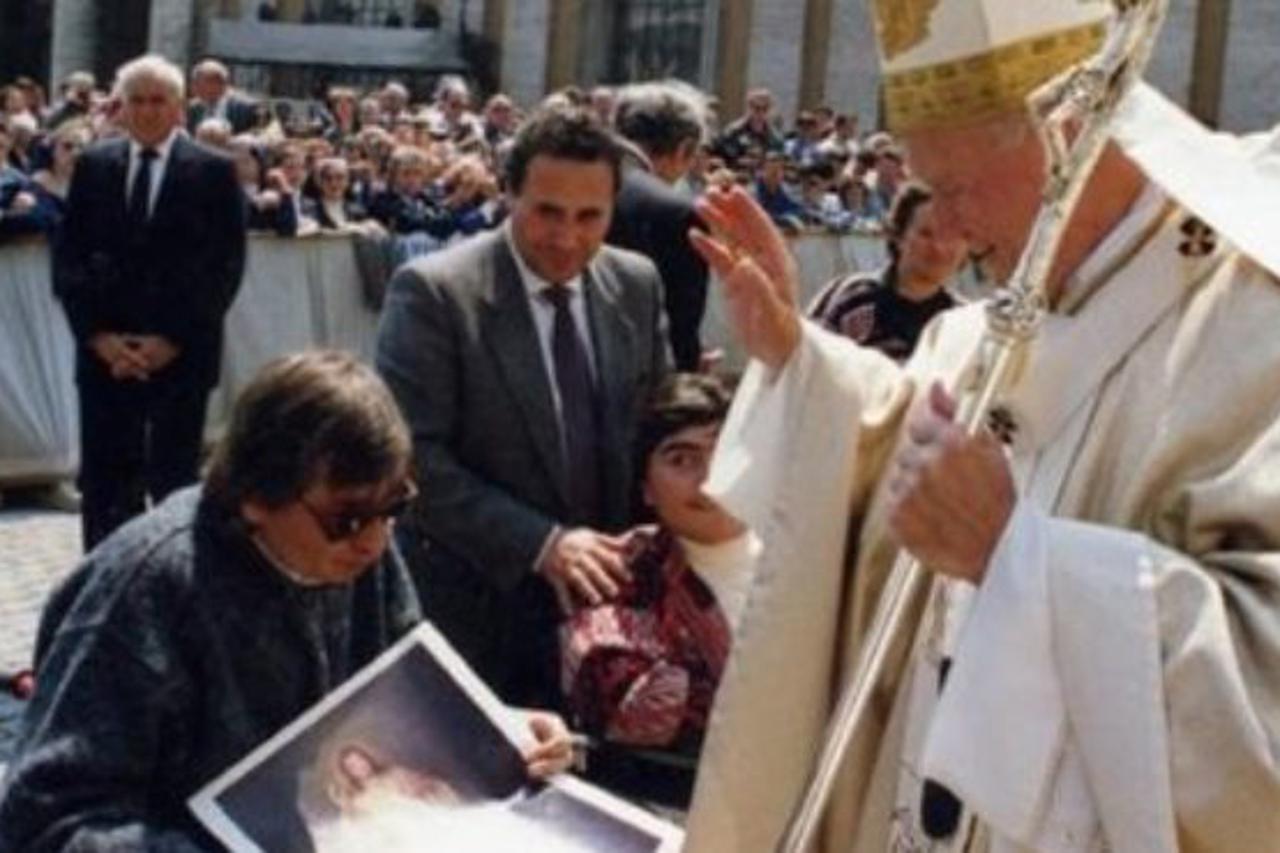 Na stepenicama Sv. Petra papa Ivan Pavao II. prolazi upravo pored njega. Papa ga je pogledao, zaustavio se, blagoslovio tu sliku i upitao tog čudnog čovjeka koji pati: „Kako ste?“. Ugo je tog trena izbacio iz sebe sav očaj, rekao je da se osjeća potpuno neutješnim te da je u dubokoj krizi. U tom njegovom plaču bio je sadržan sav njegov život pun boli i njegova pobuna.