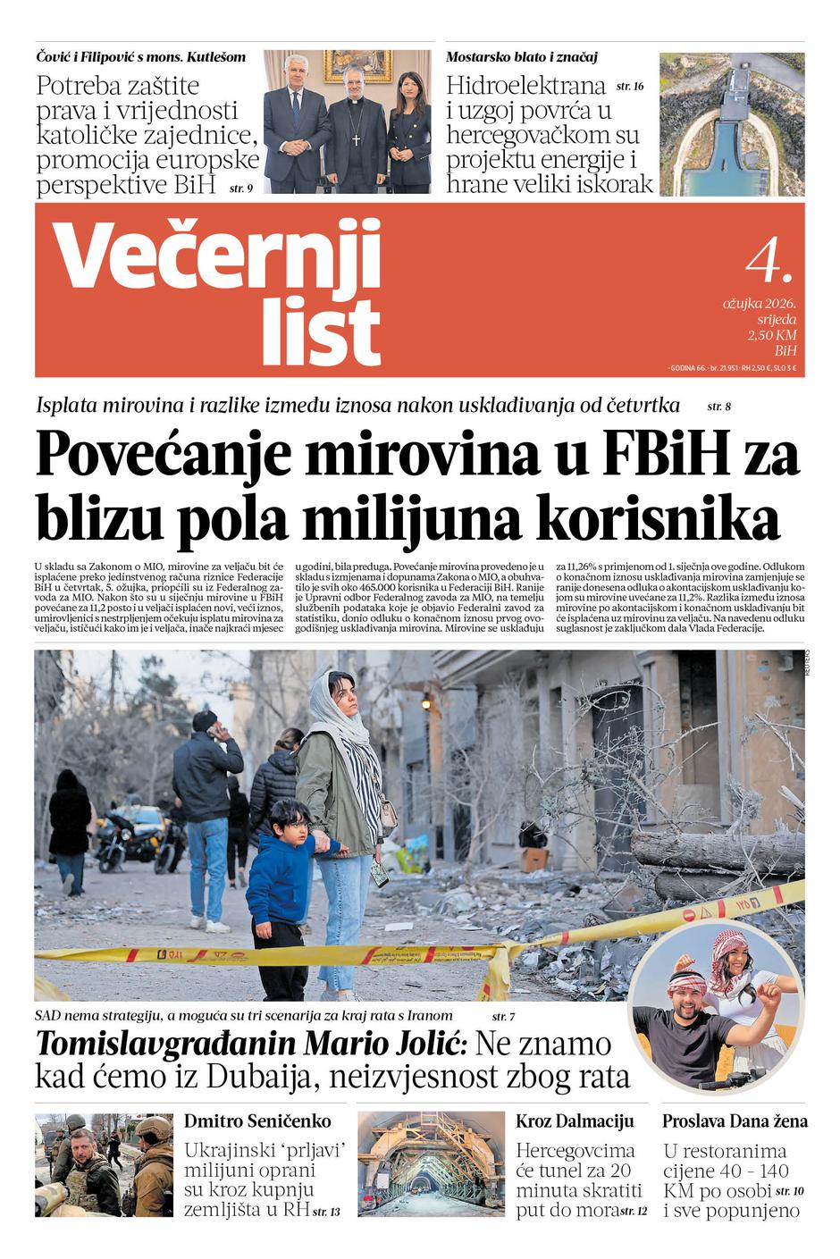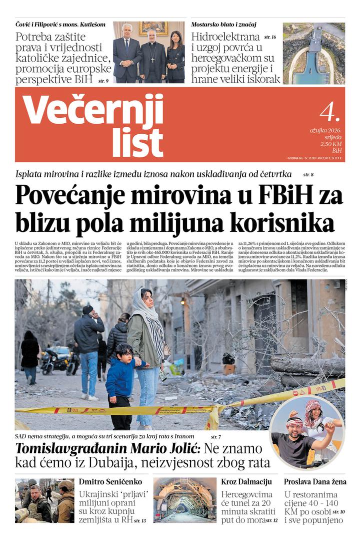 Novo izdanje, 4. ožujka 2026. godine, donosi teme koje izravno utječu na svakodnevni život građana — od sukoba na Bliskom istoku, mirovina, izgradnje cesta, pa do umjetne inteligencije i zanimljivih sportskih priča.