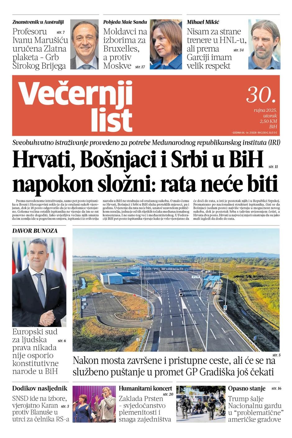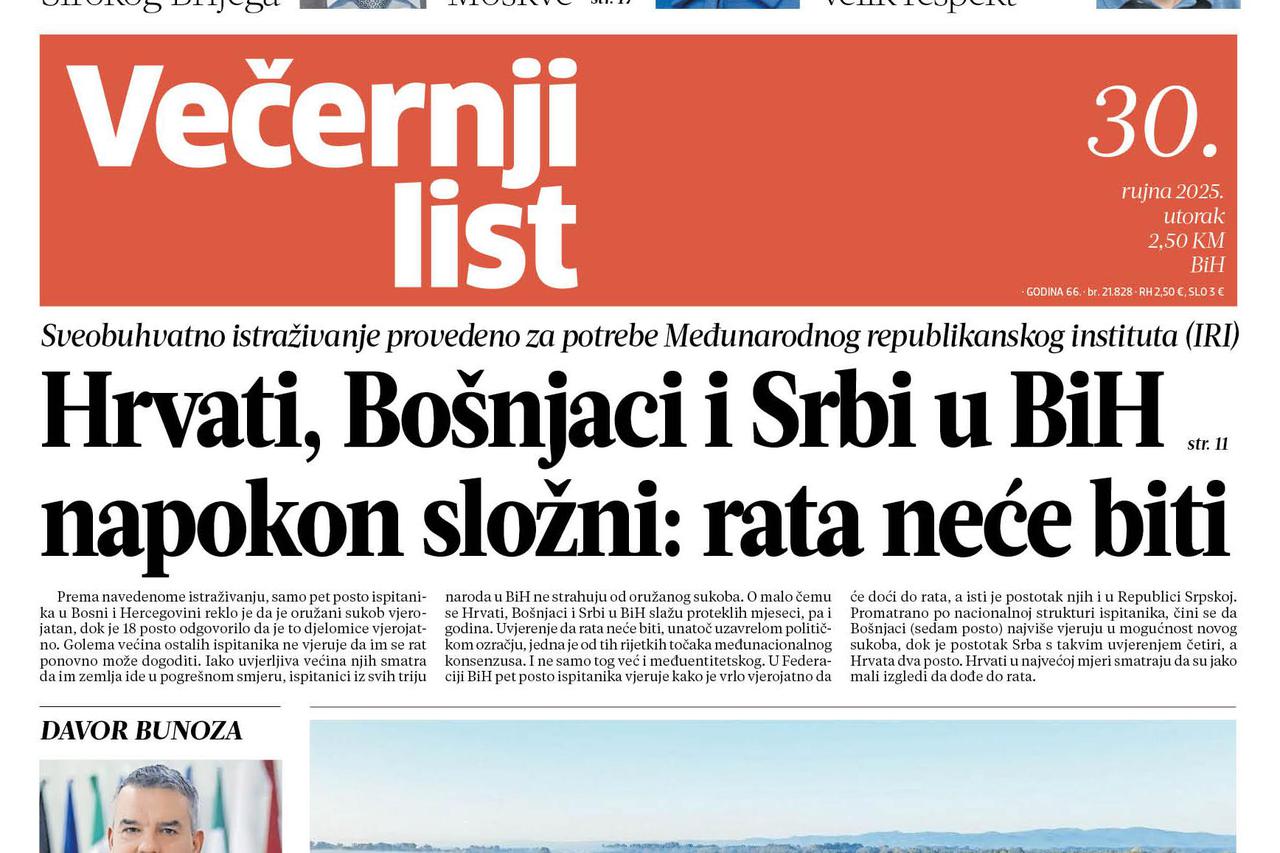 U Večernjem listu BiH u tiskanom izdanju u utorak, 30. rujna 2025. godine pročitajte: